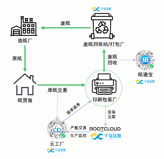 千鳥互聯(lián)通過“智能云工廠+閉環(huán)供應(yīng)鏈”雙輪驅(qū)動模式助力印刷包裝產(chǎn)業(yè)升級,改善印刷行業(yè)營商環(huán)境,解決訂單分配協(xié)同困難、生產(chǎn)進(jìn)度難把控、企業(yè)融資困難等產(chǎn)業(yè)管理難題;千鳥互聯(lián)經(jīng)工業(yè)互聯(lián)網(wǎng)改造升級,打通整個交易鏈條,縮短廢紙回收、原紙采購、產(chǎn)能交易的中間環(huán)節(jié),大幅提升交付效率,形成從原紙到廢紙的業(yè)務(wù)閉環(huán),提升流通效率,降低供應(yīng)鏈成本。