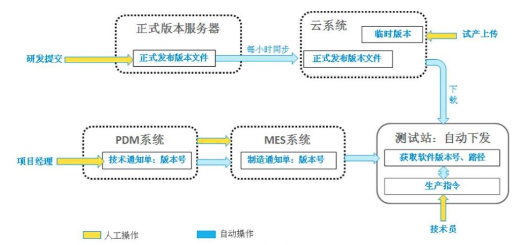 搭建優化生產測試軟件自動下發云平臺,支持多平臺軟件自動下發與自動配置(如圖5所示)。利用云架構進行參數自動下發,大大提升了架線效率。針對原來的每個站位需要花錢買license的工位進行技術改進,最終實現只需要云端一個license認證即可的方案,節省了單個工位購買license的費用。