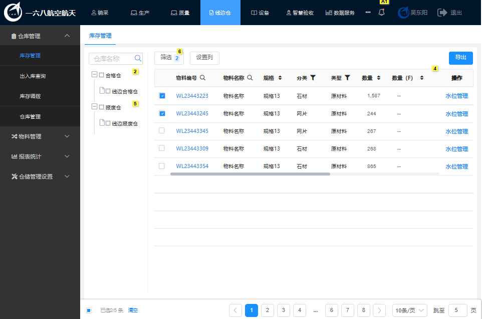 為了進一步提升六安一六八對庫存的管理水平,通過構(gòu)建線邊倉管理系統(tǒng),細化生產(chǎn)現(xiàn)場的物料管理。系統(tǒng)包括庫區(qū)庫位管理、出入庫管理、報表統(tǒng)計等相關功能,并結(jié)合5G網(wǎng)絡技術,使用手持PDA,實現(xiàn)倉庫物料的快速流轉(zhuǎn)。