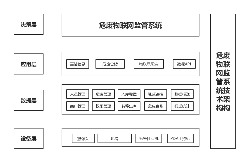 引言:貫徹落實《四川省生態環境廳辦公室 關于開展危險廢物全過程物聯網監管試點工作的通知 (川環辦函[2022] 186號) 》有關信息化監管的要求,積極推進危險廢物產生、貯存、轉移等全過程監控和信息化追溯體系建設,提升危險廢物監管能力。為產廢單位開展危險廢物產生、貯存、轉移等環節的信息化標識和應用工作,規范產廢單位危險廢物產生、貯存、轉移等重點環節的物聯網建設,實現數據信息與省平臺互聯互通,提升公司危險廢物管理水平;與省固體廢物綜合管理平臺聯網,實現危險廢物全生命周期“一碼流轉、實時感知、數據共享、全程監控、預測預警” 。