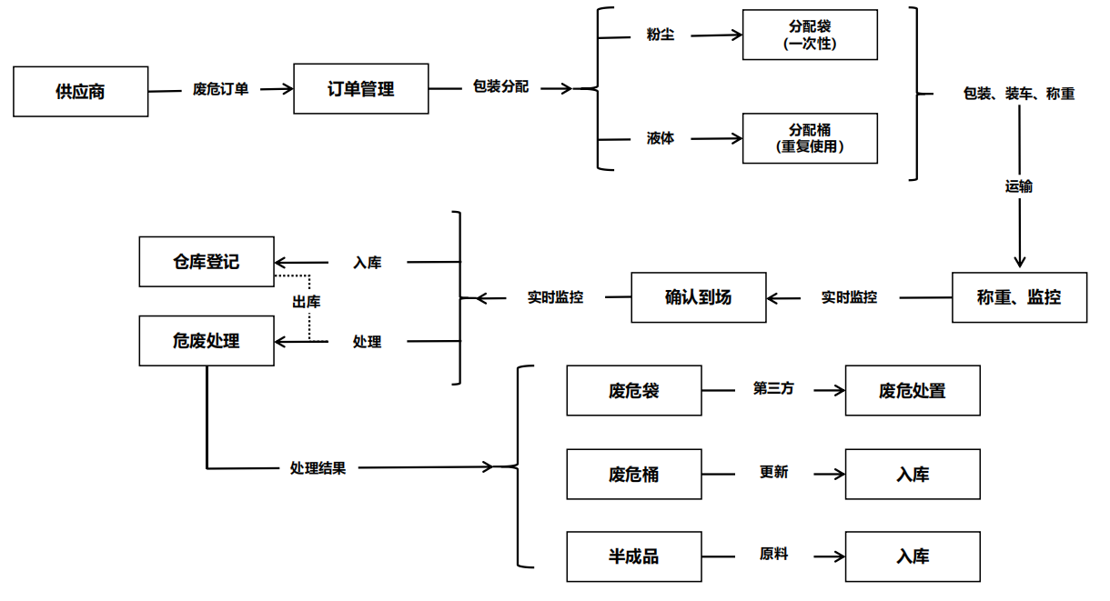 遵循建立企業精細化管理,實現危險廢物從產生、包裝、運輸、入場處置等全流程信息化監控、追溯的建設目的,
