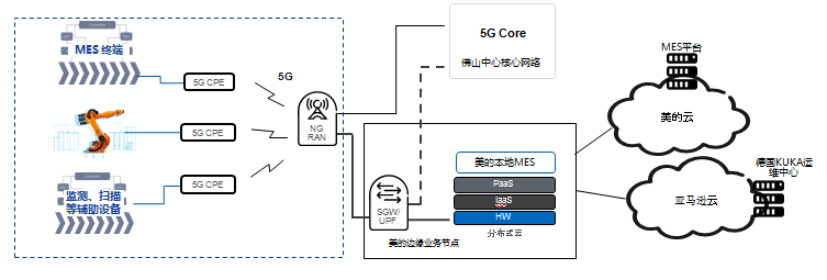 本項目在美的集團順德洗滌制造有限公司試點,采用以5G+工業互聯網為代表的新一代信息技術,更好地滿足美的洗滌公司降本增效、產線柔性化制造、設備快速迭代的發展需求,輸出涵蓋美的洗滌智慧工廠總裝、電子、鈑金、注塑等生產環節,同時升級物流、能源、SCADA、中控等流程的5G 智慧工廠解決方案。