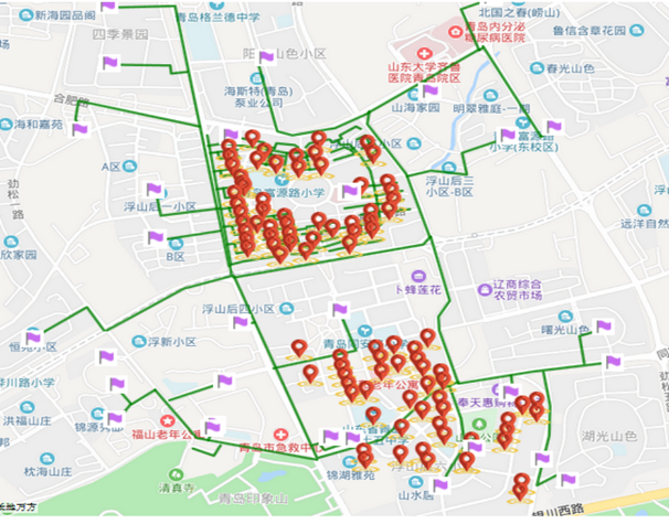 通過建立管道熱損模型,可以分析精確到每條管道的熱損情況。在發生管道泄漏時,及時報警,根據地理信息系統,及時得到坐標,避免造成大量損失,如下圖所示。