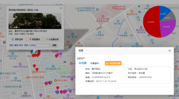 提供室溫合格率與室溫的可視化,通過數據脫敏,實時監測供溫質量情況,包括均溫,達標率,有利于運行管理粗,如下圖所示。