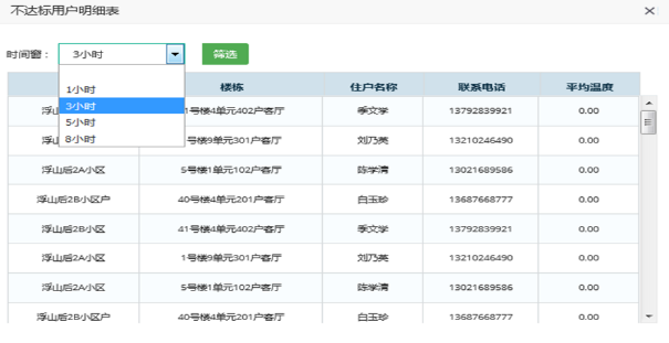 圖11用戶室溫與達標率在線監測 | 圖12不達標用戶明細表 |