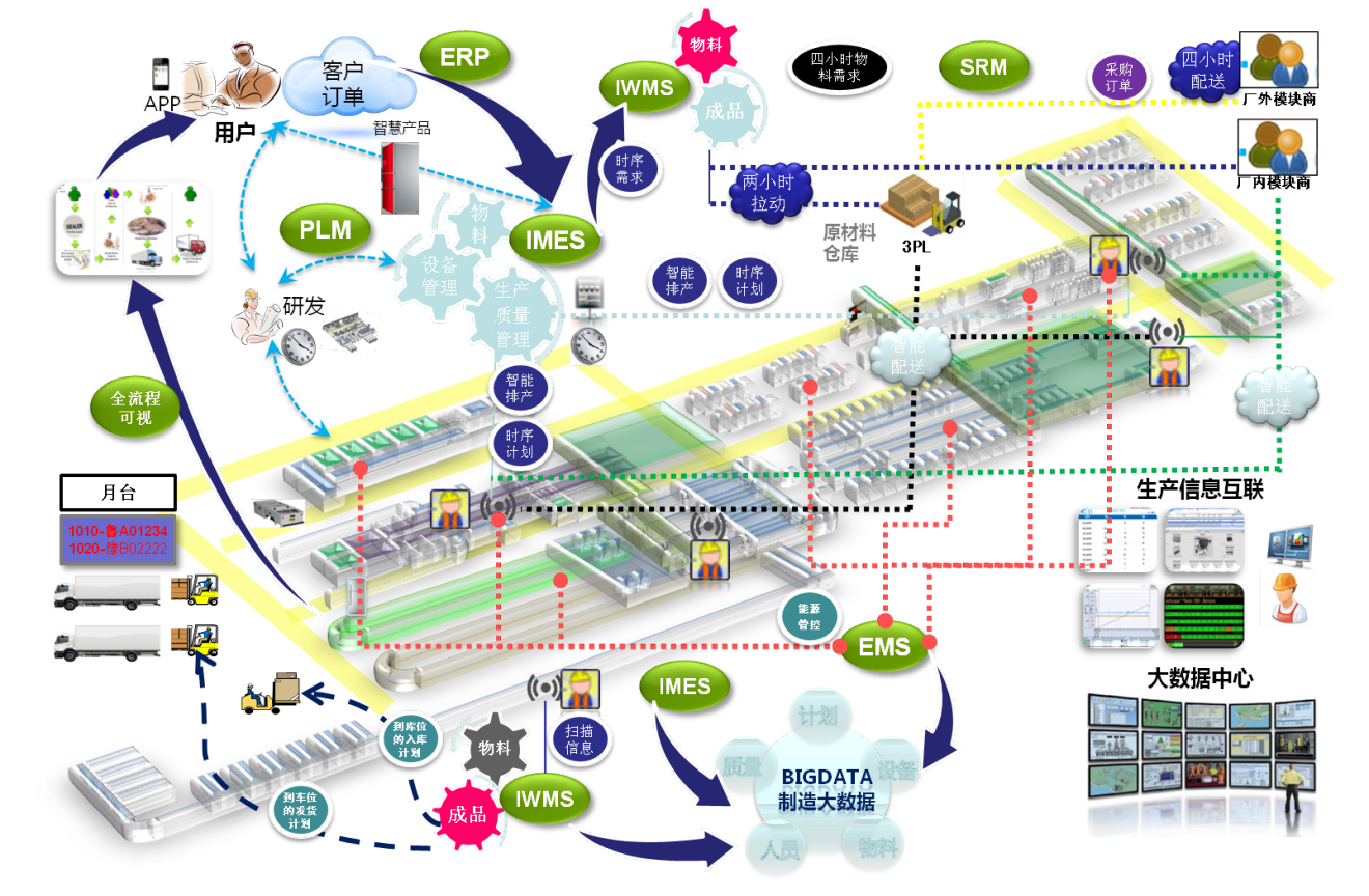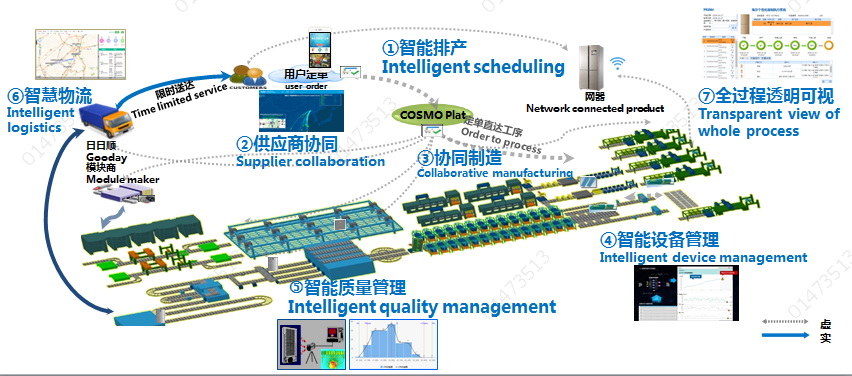 第二、互聯(lián):體現(xiàn)的是網(wǎng)絡(luò)化,內(nèi)外互聯(lián)、信息互聯(lián)、虛實(shí)互聯(lián);與用戶實(shí)時(shí)互聯(lián),從產(chǎn)品的研發(fā)到產(chǎn)品的制造,以及到我們的供應(yīng)商、物流商,全流程全供應(yīng)鏈的整合。