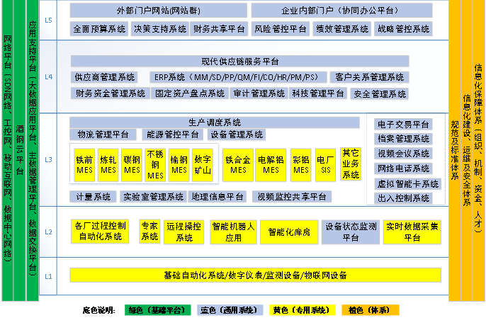 3.應(yīng)用層面 酒鋼十四五規(guī)劃的工業(yè)應(yīng)用系統(tǒng)總體架構(gòu)圖如下: