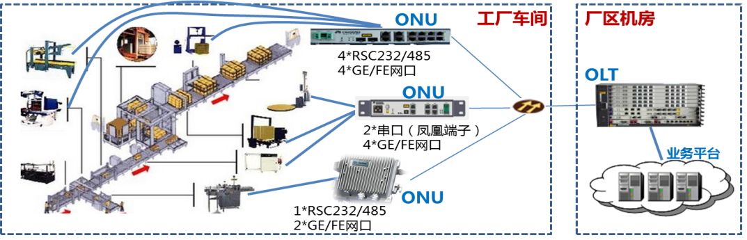 圖2-6 工廠生產設備側部署ONU