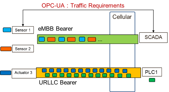 5G蜂窩技術(shù)除了適用于上述工業(yè)設(shè)備間的通信,通過和OPC-UA的結(jié)合還適用于工廠的設(shè)備層、控制層和企業(yè)層之間的通信,將設(shè)備層數(shù)據(jù)直接傳輸?shù)狡髽I(yè)層或者云端,企業(yè)的生產(chǎn)監(jiān)控設(shè)備可以實(shí)時(shí)獲得設(shè)備的運(yùn)行狀態(tài),及早將故障設(shè)備剝離出生產(chǎn)系統(tǒng),避免對生產(chǎn)造成的影響。
