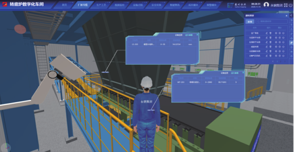 3.3.1 虛擬現(xiàn)場(chǎng)服務(wù)5G全連接工廠使用BIM技術(shù)構(gòu)建全廠的三維模型。傳統(tǒng)的三維建模,往往使用3DMax等純圖形軟件,建成的模型僅包含幾何性質(zhì),僅能做展示用,無(wú)法將其與其他數(shù)據(jù)相關(guān)聯(lián)。近年來(lái),智能三維模型軟件被越來(lái)越多地用于工業(yè)三維建模,而BIM技術(shù)是其中應(yīng)用較為廣泛的。BIM的核心是通過建立虛擬的三維模型,利用數(shù)字化技術(shù),為這個(gè)模型提供完整的、與實(shí)際情況一致的信息庫(kù)。該信息庫(kù)不僅包含描述建筑物構(gòu)件的幾何信息、專業(yè)屬性及狀態(tài)信息,還包含非構(gòu)件對(duì)象(如空間、運(yùn)動(dòng)行為)的狀態(tài)信息。借助生產(chǎn)線的三維模型,大大提高了生產(chǎn)的信息集成化程度,從而將生產(chǎn)打造成一個(gè)工程信息交換和共享的平臺(tái)。BIM模型中的每一個(gè)實(shí)體,均能夠被賦予自定義的屬性,并通過這些屬性與其他系統(tǒng)進(jìn)行關(guān)聯(lián)。點(diǎn)擊模型中的實(shí)體,便可獲取各種信息。如點(diǎn)擊攝像頭打開實(shí)時(shí)視頻,當(dāng)設(shè)備異常或故障報(bào)警時(shí),中控工可以通過BIM平臺(tái)快速定位到該設(shè)備并采取相應(yīng)操作。