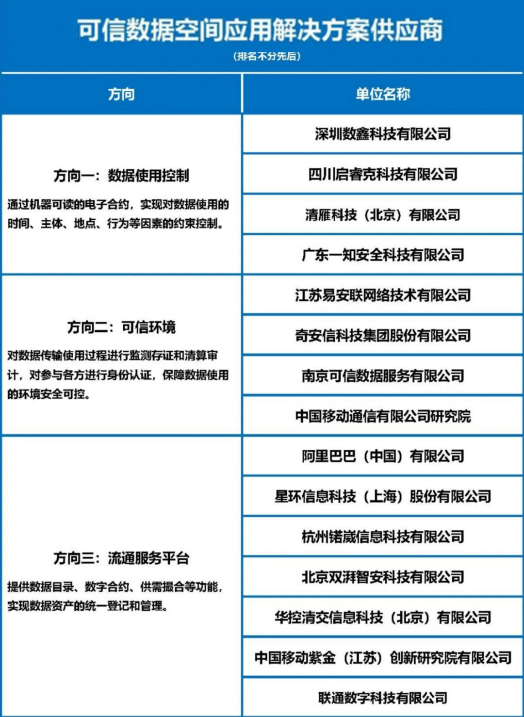 本次發布的供應商主要面向數據使用控制、可信環境、流通服務平臺三大方向,中國信息通信研究院首席專家續合元,上海數據交易所副總經理、上海市數商協會秘書長盧勇為15家可信數據空間應用解決方案供應商頒發證書。
