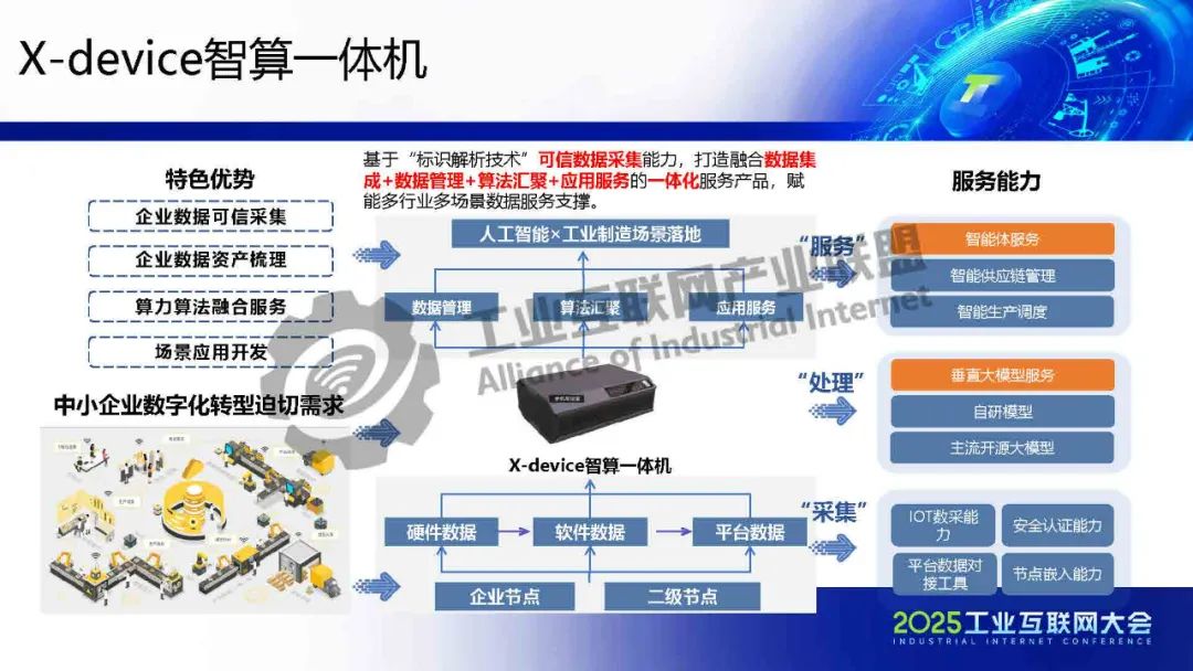 X-device智算一體機(jī)是基于“標(biāo)識(shí)解析技術(shù)”可信數(shù)據(jù)采集能力,打造融合數(shù)據(jù)集成+數(shù)據(jù)管理+算法匯聚+應(yīng)用服務(wù)的一體化服務(wù)產(chǎn)品,賦能多行業(yè)多場(chǎng)景數(shù)據(jù)服務(wù)支撐。