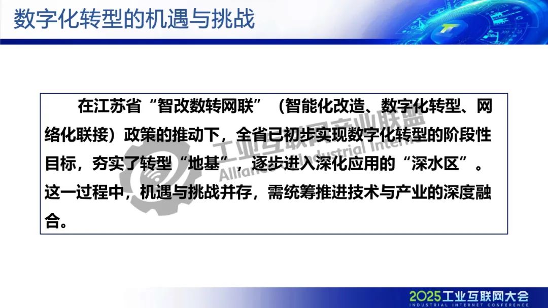 5月21日,在2025工業互聯網大會“工業互聯網產融合作專題活動”上,江蘇省經濟和信息化研究院副院長趙海建發表了《工業互聯網賦能江蘇制造業實現數字化轉型》的主題演講。