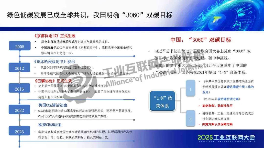 在國際互認方面,依托標識體系,可以構建中國零碳園區國際認證的高效互認體系,增強我國在綠色貿易中的話語權。基于標識解析的跨境碳數據交換網關,能夠支持不同國家碳核算方法學的等效轉換,滿足歐盟碳邊境調節機制(CBAM)等國際合規要求,實現跨境碳數據的互認。此外,工業互聯網標識解析體系還與國際通用的產品碳足跡核算標準ISO14067深度對接,可實現產品從原材料采購到出廠全生命周期碳足跡的標識化追蹤。