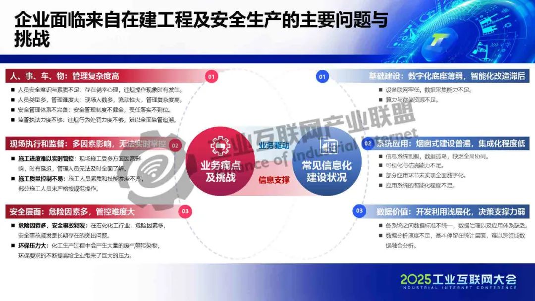 劉飛介紹,石油化工產業作為我國經濟的支柱產業,安全生產一直是其發展過程中的重要問題。我國化工行業正從 “分散粗放” 轉向 “園區集聚”,從 “高碳依賴” 轉向 “綠色低碳”,從 “技術跟隨” 轉向 “自主創新”。面向石化化工、建筑工程等具有安全風險的高危行業,聚焦安全培訓、綜合安防、特殊作業、風險分級管控、隱患排查治理、安全巡檢、施工質量管控、施工進度智能分析等企業安全管控、工程建設管理,提供咨詢、產品及軟件定制開發、物聯網終端硬件實施、數據集成服務、智能平臺、客戶化場景應用服務,深度覆蓋數字工地、安全生產等核心業務場景。