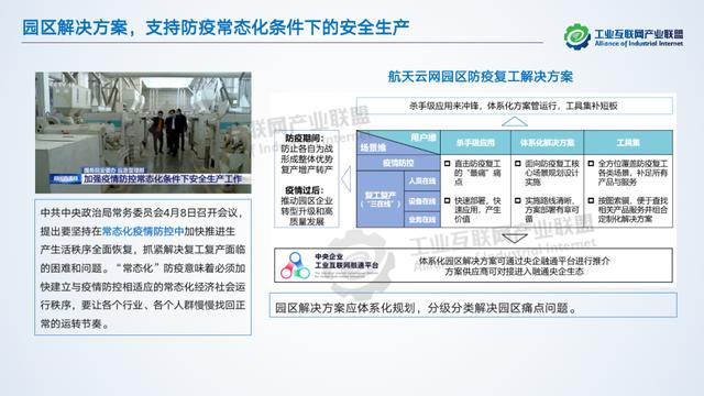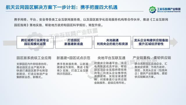 航天云網(wǎng)率先在四川落地工業(yè)互聯(lián)網(wǎng)園區(qū)平臺,服務(wù)政府、園區(qū)和入駐企業(yè)。幫助政府實現(xiàn)精準治理和培育、園區(qū)科學(xué)規(guī)劃、精準招商,實現(xiàn)企業(yè)全生命周期管理,把握跨區(qū)域跨行業(yè)的規(guī)模化運營機遇。未來,還將攜手網(wǎng)絡(luò)、平臺、安全等各類工業(yè)互聯(lián)網(wǎng)服務(wù)商,以及園區(qū)數(shù)字化咨詢服務(wù)機構(gòu)等合作伙伴,推進《工業(yè)互聯(lián)網(wǎng)園區(qū)指南》落地實施,幫助地方政府和園區(qū)科學(xué)規(guī)劃、轉(zhuǎn)型升級。