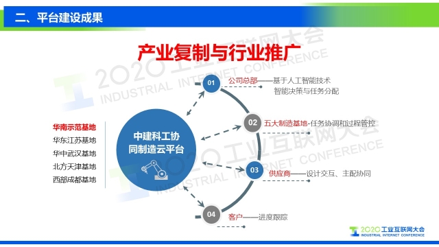 點擊下方鏈接回看演講視頻: 專家說 “中建科工根據'數字化、信息化、智能化'的設計理念,充分利用工業PON網絡、智能生產管理系統、工業大數據平臺等先進技術,構建基于云架構的大數據分析平臺。通過建立工業互聯網大數據分析平臺,進行數據采集、分析、決策,優化提升可制造性和可服務性,形成企業智能管控閉環,提高生產效率,降低運營成本。” 以下是演講PPT 敬請閱讀
