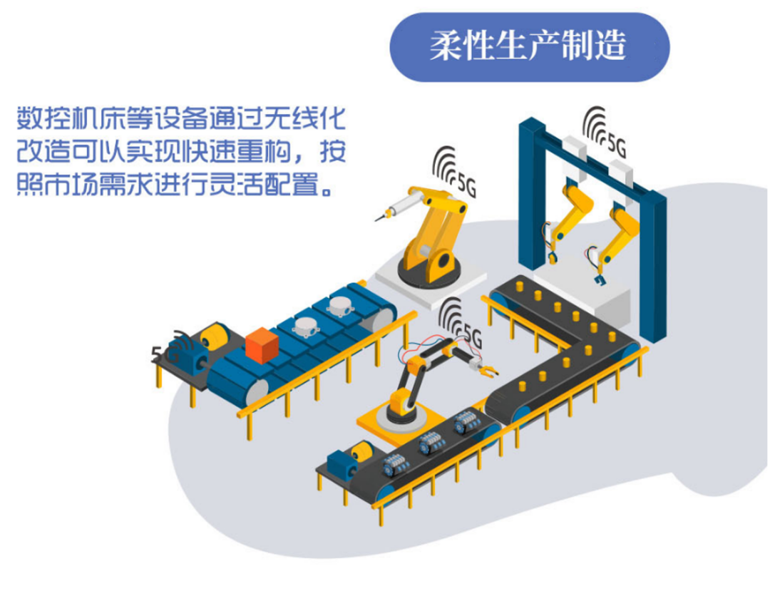 企業生產設備高度自動化、智能化,生產線可根據要求進行設備自主組合和參數自動配置,現場實現5G網絡覆蓋,設備具有 5G 網絡接入能力。