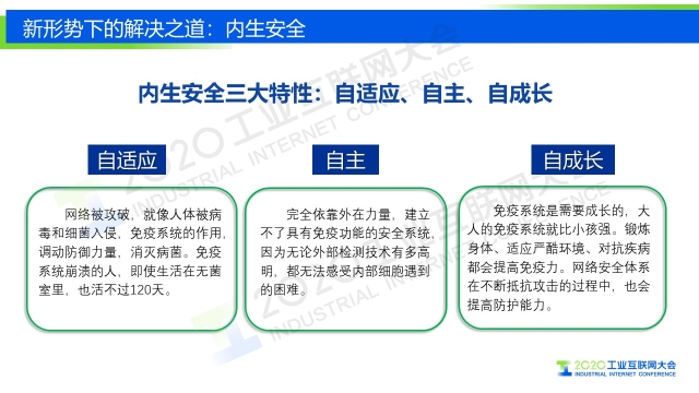 “近年來,全球重大工業控制系統安全事件呈高發趨勢,5G時代新應用場景下工控系統面臨的威脅更嚴重。在這樣的形勢下,需用內生安全筑牢工業互聯網安全防線。內生安全是一套復雜的系統工程,需要用工程化、體系化的方式進行實施,實現它的關鍵就是安全框架。安全框架有三個重點:“理清楚”、“建起來”、“跑得贏”,企業按此分步實施,便可逐步建成面向未來的安全體系。”