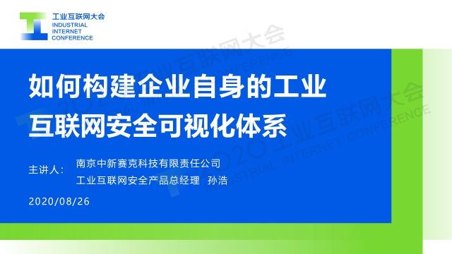 在2020工業互聯網大會“工業互聯網安全”主題論壇上,南京中新賽克科技有限責任公司工業互聯網安全產品總監孫浩發表題為《如何構建企業自身的工業互聯網安全可視化體系》的演講,分享當前工業互聯網發展過程中工業企業、平臺企業如何構建自身的安全可視化體系的一些理念。