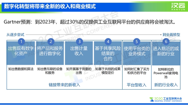 “整個工業(yè)互聯(lián)網(wǎng)發(fā)展的趨勢,前期是以連接為基礎(chǔ),后期則將以應(yīng)用和服務(wù)來獲取更多的價值。數(shù)字化轉(zhuǎn)型將帶來全新的收入和商業(yè)模式。我們可以看到,從工業(yè)互聯(lián)網(wǎng)逐步開始出售一些數(shù)據(jù)和算法,出售設(shè)備的服務(wù)和互聯(lián),出售一些模型和工業(yè)知識圖譜,這將成為工業(yè)互聯(lián)網(wǎng)未來新的商業(yè)模式,借此工業(yè)互聯(lián)網(wǎng)有將邁入了一個發(fā)展的快車道。”