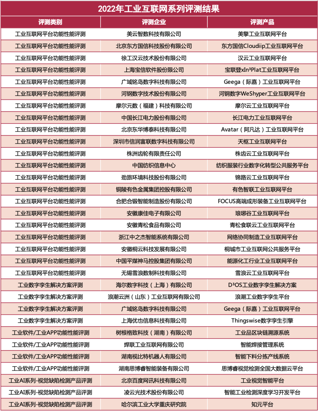 由工業和信息化部、江蘇省人民政府主辦,中國信息通信研究院、江蘇省工業和信息化廳、江蘇省通信管理局、蘇州市人民政府、工業互聯網產業聯盟等單位聯合承辦的2023年工業互聯網大會已于6月16日在蘇州順利閉幕。在2021-2023工業互聯網產業聯盟成果報告會上,2022年工業互聯網平臺功能性能等評測結果正式對外公布。