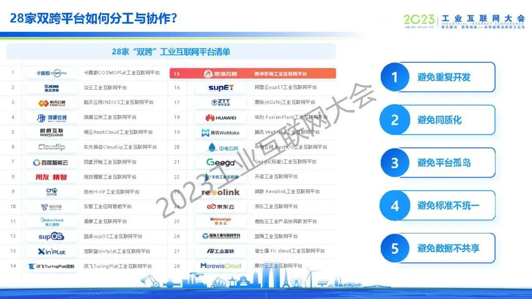 武愛斌介紹了雙跨平臺未來走深向實發展的三類挑戰:工業賦能深度待提升、互聯網技術融合待加強和互聯網模式探索待深化。提出了促進雙跨平臺創新、可持續發展的策略,建議數據要素和模型的價值要“走出圍墻”,賦能產業鏈伙伴和區域數字經濟,28家雙跨平臺“縱向”與“橫向”層面的全面合作,避免重復投資、推動行業創新,提出由政府/協會牽頭,平臺企業、運營商和生態企業共建,企業按需租用的新生態。