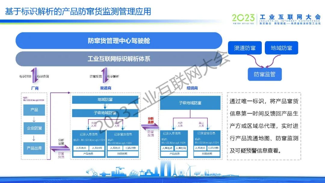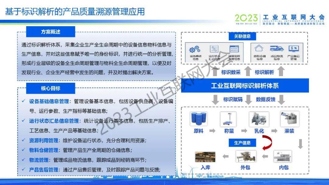 在會上,趙鵬飛分享了日化行業與工業互聯網融合應用的實踐成果,包含設備預測性運維、產品質量溯源管理、產品防竄貨監測、供應鏈管理等解決方案。