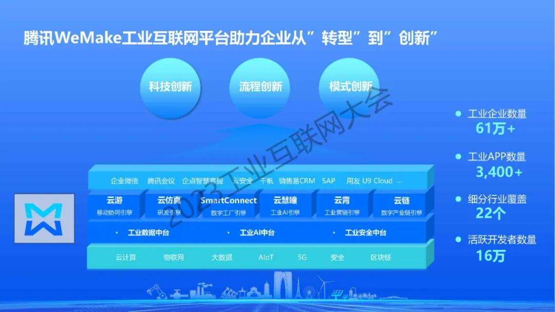 6月14日,在2023工業互聯網大會“融合新模式、融入新工業論壇暨中國互聯網協會工業互聯網工作委員會第一屆委員會第二次全體成員會議”上,騰訊智能制造行業首席專家邴金友發表了《工業互聯網平臺推動制造企業數字化從“轉型”邁向“創新”》的演講。