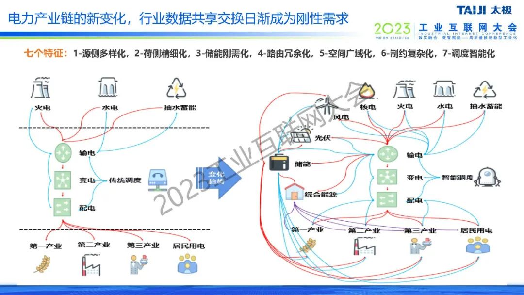 近年來,太極股份聯合各生態合作伙伴在火電、水電、新能源、輸配電等領域積極推廣和落地工業互聯網應用場景,創新成果取得了新成效。隨著雙碳目標的持續推進,以新能源為主體的新型電力系統在電力生產、傳輸、消費方式等方面將面臨根本性變革,面對電力產業鏈的新變化,行業數據共享交換日漸成為剛性需求。通過構建數據分級分類存儲體系、數據脫敏安全保障能力,推動電力數據社會化共享應用,利用電力數據為企業、政府、社會公眾等各類需求方提供增值服務,有利于搭建良好的電力產業生態。