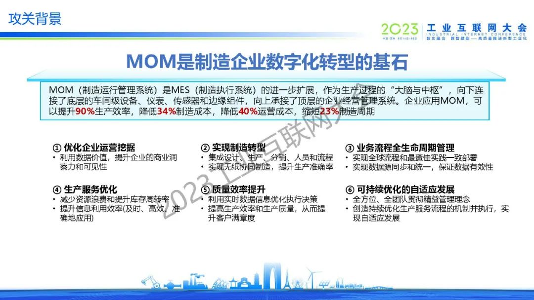 "MOM(制造運(yùn)行管理系統(tǒng))是MES(制造執(zhí)行系統(tǒng))的進(jìn)一步擴(kuò)展,向下連接了底層的車間級(jí)設(shè)備、儀表、傳感器和邊緣組件,向上承接了頂層的企業(yè)經(jīng)營(yíng)管理系統(tǒng),作為生產(chǎn)過(guò)程的“大腦與中樞”,MOM是制造企業(yè)數(shù)字化轉(zhuǎn)型的基石。"