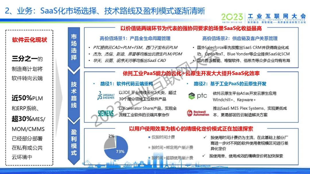 侯羽菲表示,工業(yè)互聯(lián)網(wǎng)平臺(tái)技術(shù)以應(yīng)用開發(fā)、智能算法引擎為代表的根技術(shù)能力正在加速升級(jí)。業(yè)務(wù)方面,三分之一的制造商計(jì)劃將軟件轉(zhuǎn)向云端。近50%PLM和ERP系統(tǒng)、超30%MES/ MOM/CMMS已經(jīng)部分部署在私有或公共云環(huán)境中。而未來應(yīng)充分發(fā)揮我國制造業(yè)龍企業(yè)數(shù)據(jù)、場(chǎng)景優(yōu)勢(shì)、電商企業(yè)資源優(yōu)勢(shì),加快補(bǔ)齊、增強(qiáng)、創(chuàng)新我國數(shù)字化服務(wù)商的技術(shù)產(chǎn)品能力,探索形成我國工業(yè)互聯(lián)網(wǎng)平臺(tái)發(fā)展的特色路徑。