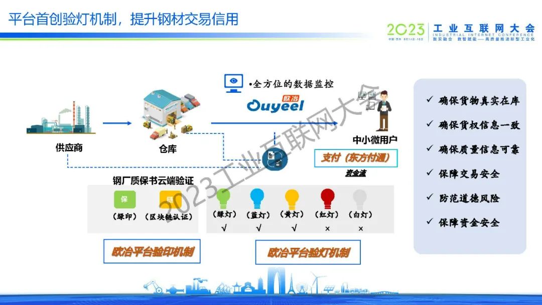金文海表示,歐冶平臺致力打造“眾生平等”的線上平臺交易模式,運用區塊鏈新技術助力行業信用體系建設,創新互聯網營銷模式助力生態圈智慧營銷升級,運用算法模型滿足鋼鐵制造和供應鏈極致效率提升需求,以數字科技應用為驅動,創新智慧供應鏈服務新體驗。