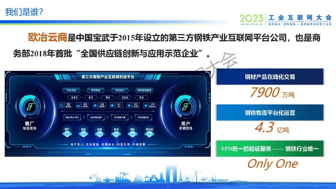 6月15日,在2023工業互聯網大會“工業互聯網平臺創新發展論壇”上,歐冶云商總裁金文海發表了《基于工業互聯網的產業互聯與生態賦能》的主題演講。
