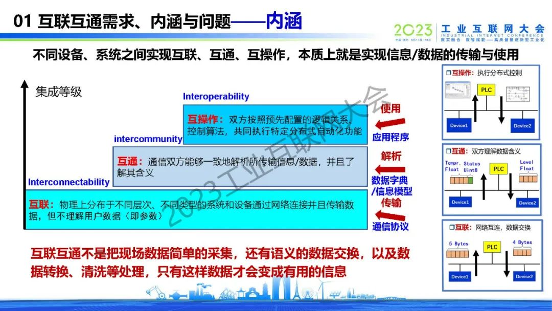 “不同設(shè)備、系統(tǒng)之間實(shí)現(xiàn)互聯(lián)、互通、互操作,本質(zhì)上就是實(shí)現(xiàn)信息/數(shù)據(jù)的傳輸與使用?!?/p>