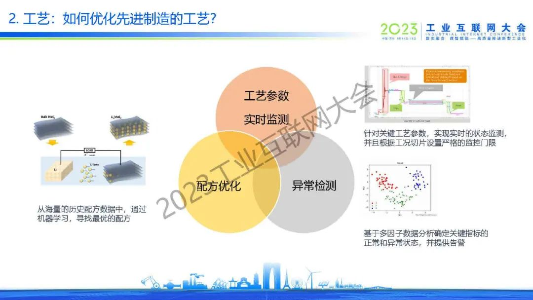 時培昕指出,提高裝備的智能化程度需要通過智能控制、預測性維護、數字孿生和專家知識庫這四個方面。他也提到,優化先進制造的工藝需要配方優化、工藝參數實時監測和異常檢測來達成。
