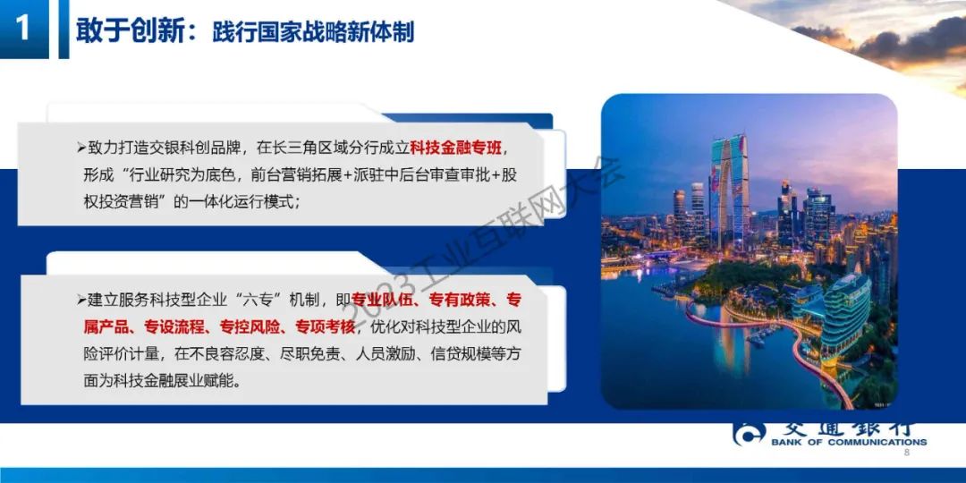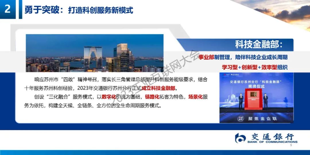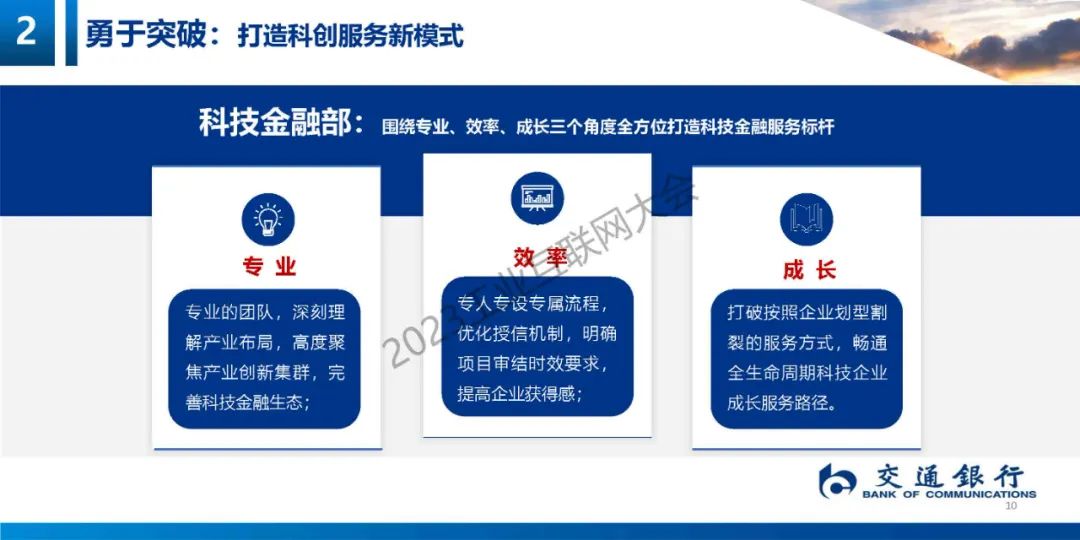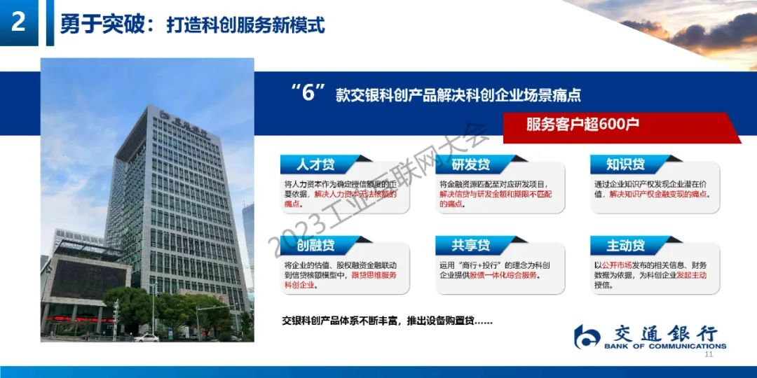 陳娟娟詳細地介紹了交通銀行在踐行國家戰略方面,服務創新發展方面做出的實踐,重點介紹了“6+3+7"的產品模式,幫助科創企業產品解決金融痛點和難點。