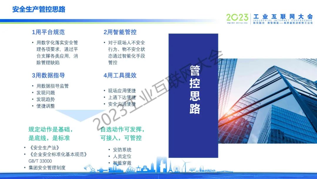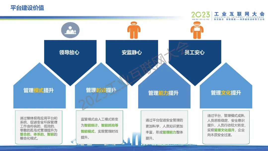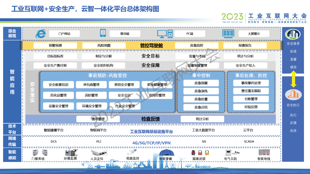 許勉表示,化工行業(yè)數(shù)智化不是一蹴而就的事情,而是一個(gè)不斷完善的過程。底層基礎(chǔ)決定上層建筑,走好第一步非常重要。從“互聯(lián)”和“安全”為出發(fā)點(diǎn),采用“用平臺規(guī)范、用智能管控、用數(shù)據(jù)指導(dǎo)、用工具提效”的建設(shè)思路,圍繞人員、設(shè)備(環(huán)境)、作業(yè)、管理、綜合應(yīng)用、應(yīng)急六個(gè)方面,構(gòu)建“實(shí)用、管用、好用”的云智一體化平臺。在“六層防護(hù)、五道保險(xiǎn)、四重管控、四個(gè)融合、三大應(yīng)用、兩步處置”合力加持下,構(gòu)筑全流程數(shù)字安全堅(jiān)實(shí)屏障,為化工園區(qū)、企業(yè)建立最具價(jià)值的智能安全管控平臺。