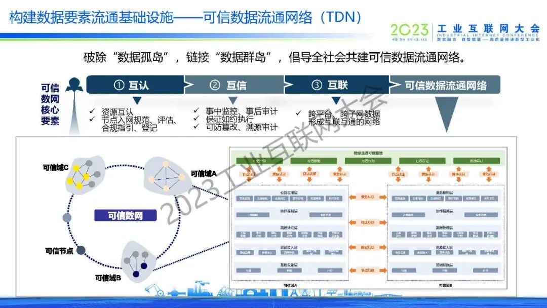 魏凱表示,數據要素收益分配與安全治理是“數據二十條”的重要內容。圍繞數據資產管理和數據治理,中國信通院持續探索企業數據治理能力、數據資產、數據估值、數據質量評估、數據開發運營一體化等前沿課題。可信數據流通網絡(TDN)破除“數據孤島”,鏈接“數據群島”,倡導全社會共建可信數據流通網絡。