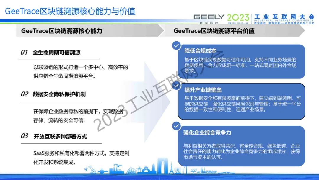 6月16日,在2023工業互聯網大會“工業互聯網+區塊鏈創新發展論壇”上,無錫吉利數字科技有限公司產品總監賽磊發表了《基于區塊鏈的工業互聯網產業供應鏈溯源云平臺實踐》的主題演講。