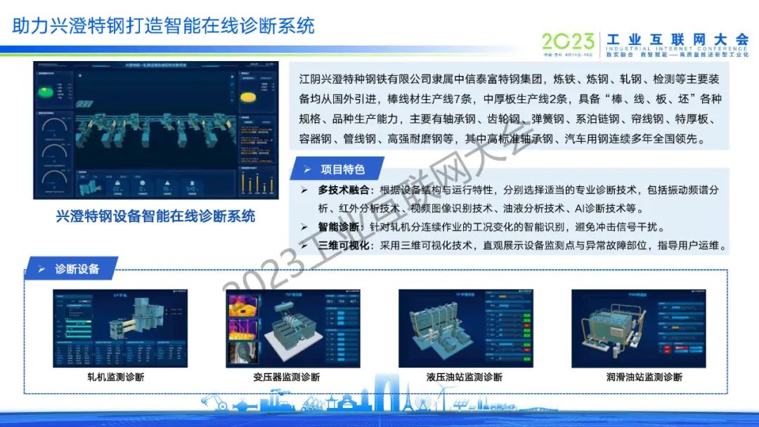 “三維可視化監控實現“所見即所得”,通過快速構建產線、設備組態,內置鋼鐵各工藝、設備的豐富圖元,三維可視化模型,精準定位故障位置,全面、清晰展現產線設備實時運行狀態。”