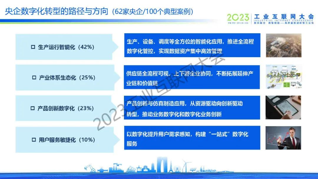 “央企數字化轉型有四個路徑與方向。第一,生產、設備、調度等全方位的智能化應用,推進全流程數字化管控,實現數據資產集中高效管理;第二,供應鏈全流程可視,上下游企業協同,不斷拓展延伸產業鏈和價值鏈;第三,產品創新與仿真制造應用,從資源驅動向創新驅動轉型,推動業務數字化和數字化業務創新;最后,以數字化提升用戶需求感知,構建“一站式”數字化服務。”