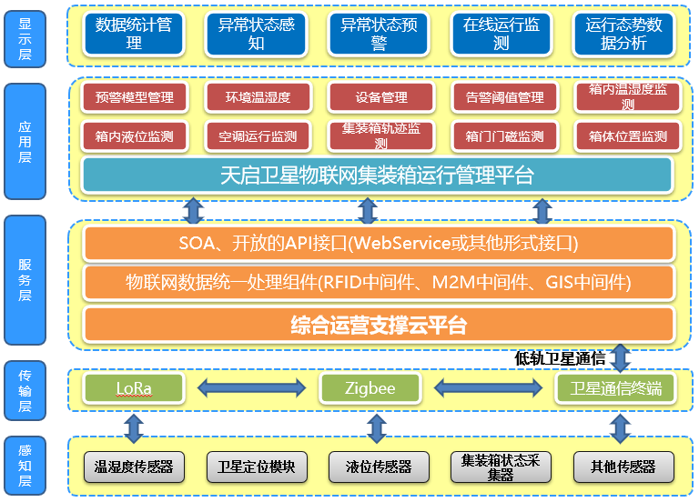 天啟衛星物聯網集裝箱供應鏈管理系統,基于國內首創的低軌窄帶衛星星座-天啟星座的衛星通信技術,結合低軌衛星通信、物聯網、邊緣計算、大數據、云計算等先進技術優勢,為中集集團及用戶的集裝箱供應鏈在線管理提供解決方案。系統應用的新技術包括:
