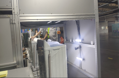 改善后/收益:利用機械手取代人工摘取內(nèi)桶投放動作,以及采用先進的AI工業(yè)視覺定位,自動調(diào)整內(nèi)桶放置位置,避免損壞箱體,節(jié)拍由12S提升至11秒,達到省人提效;