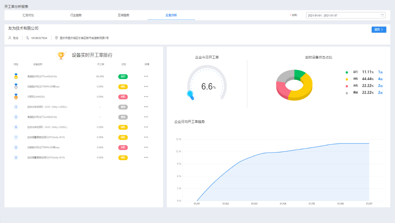 圖9.設備手環后臺PC端的開工分析報表頁面