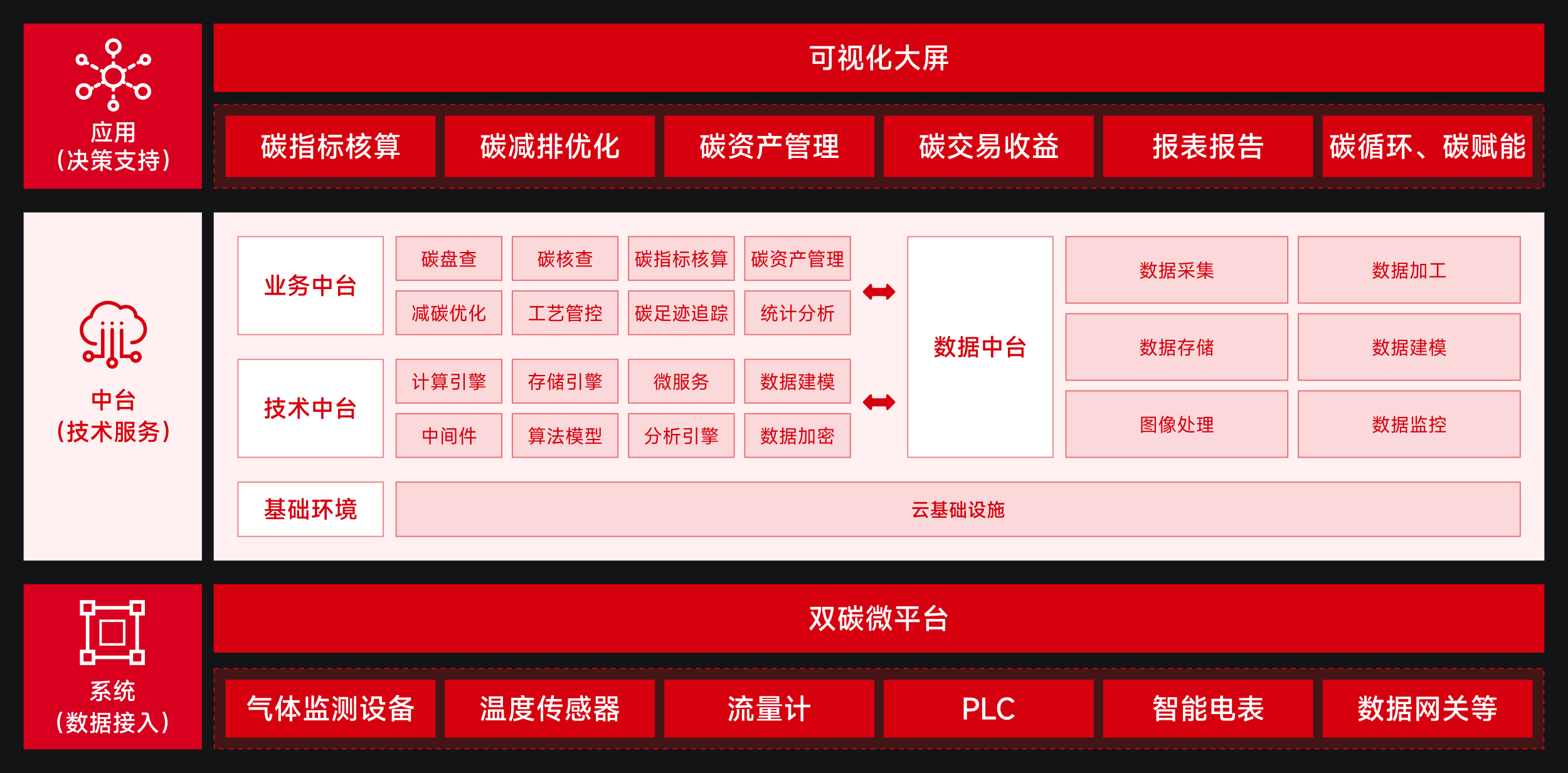 雙碳微平臺是平臺功能的延伸或分布式平臺,能夠進行邊緣側智能管控,滿足企業數據和系統私有化部署需求,隨時與平臺連接,在此基礎上實時精準采集碳相關監測數據及生產數據,沉淀模型算法優化工藝減少碳排放。