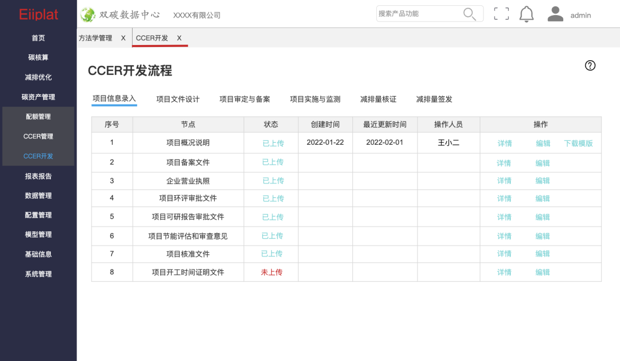 一是摸清碳家底。雙碳數據中心積累了大量方法學,不同場景下的園區可結合自身的實際情況進行信息填報確認,系統自動篩選出適用的方法學及對應的項目邊界、基準線情景,通過對相應的參數指標進行監測,能夠計算出園區實際的碳排放量和碳減排量,從而摸清碳家底。