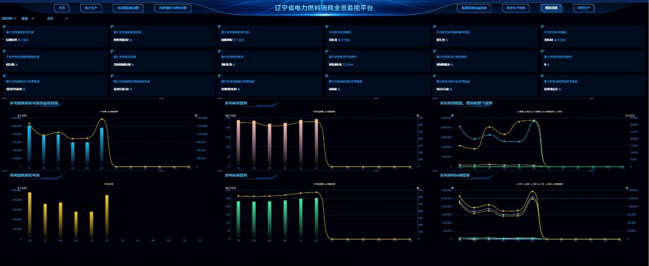 全省電量構(gòu)成及碳排放監(jiān)視方面,全省火電、水電、風電、太陽能、清潔能源發(fā)電占比情況,支持按年、月進行篩選,分析全省電力構(gòu)成占比,并按日進行實時碳排放監(jiān)測情況。