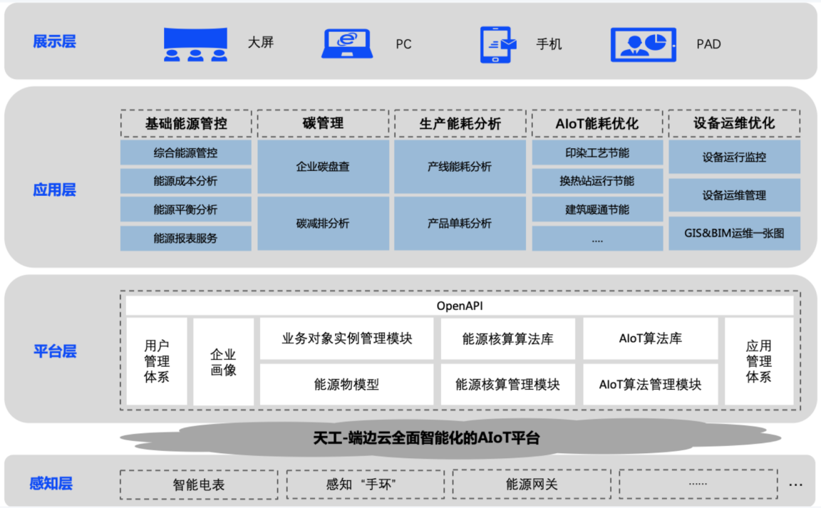 當代社會,能源緊缺和環境惡化已經成為全球面臨的最大問題。我國近年來經濟持續增長的同時也引發了能源供應危機及環境嚴重污染等問題。同時,溫室氣體排放引起全球氣候變暖,備受國際社會廣泛關注。習近平總書記向世界宣示了我國“3060”碳達峰與碳中和的目標與愿景。節能減排、低碳環保、能源轉型不再只是一個社會的熱點話題,更是我們未來的必經之路。在可持續發展的理念指導下,通過云計算、人工智能、物聯網技術的助力,結合新能源開發、產業轉型等多種手段,降低能源消耗,達到社會經濟發展與生態環境雙贏的目的。推廣使用能碳數智化平臺是能源管理科學化、信息化、規范化的重要舉措,在提高能源管理效率的同時,是能源、環境和經濟可持續發展的內在要求。