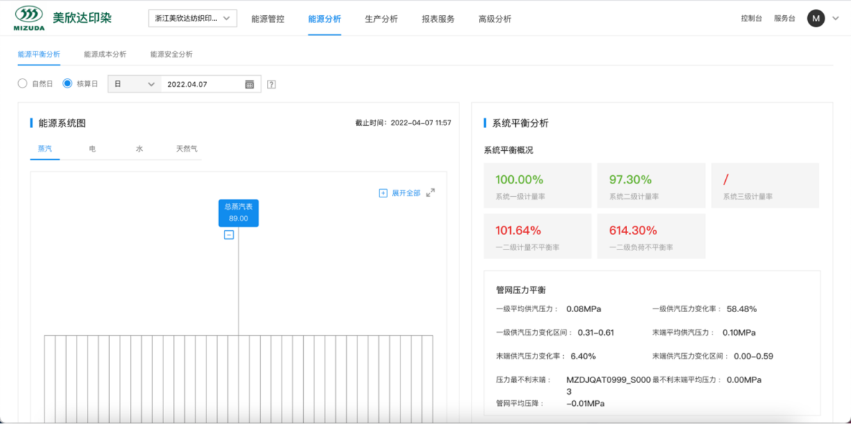 解決方案:美欣達印染產線采用典型的長車染色工藝,設備繁多,工藝復雜,產線長達幾百米,度能系統為給企業提供了基于模型的高級節能分析模塊。深入長車印染產線與工藝,基于能耗數據、生產數據、工藝數據,多維數據建立模型,找到最優能耗,反饋優化參數建議,識別能源偏差與浪費,幫助企業透明化生產管理,及時調優控制,達到精準化節能降碳。